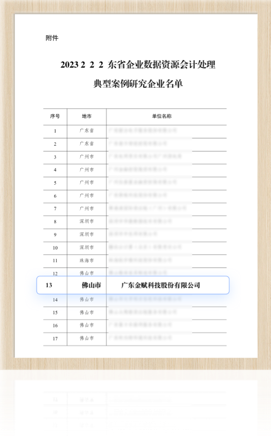 广东省财政厅24家调研企业之一,作为8家代表之一入选全省入表典型案例
